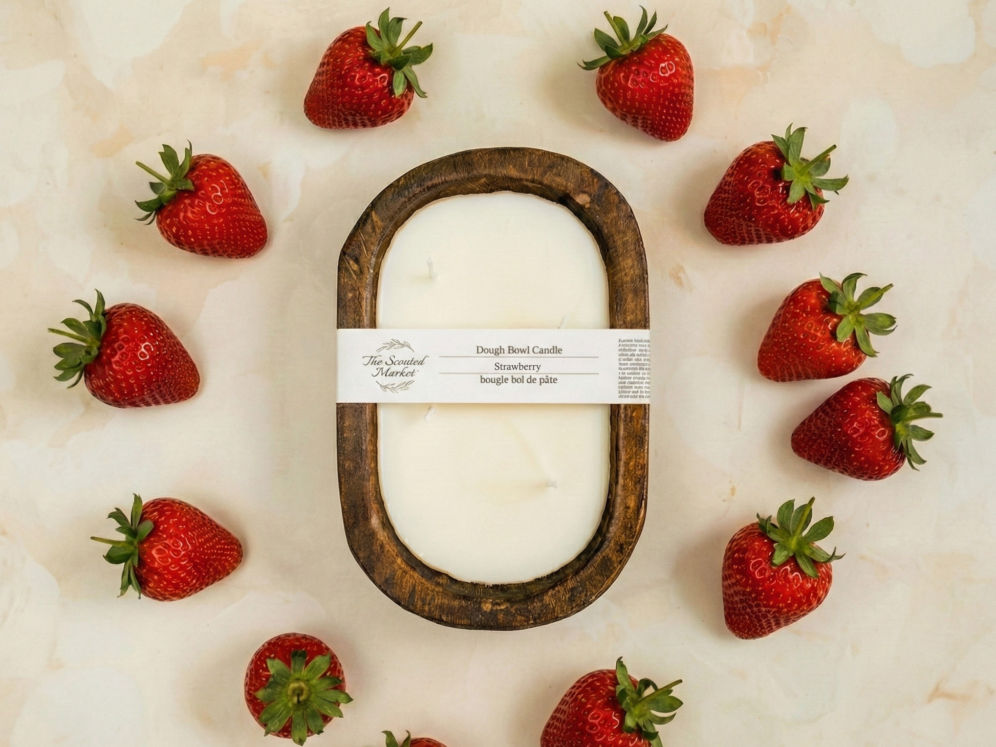 STRAWBERRY Brown Oval 4 Wick Dough Bowl Soy Candle